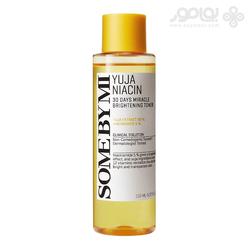 این تونر حاوی 90% عصاره یوجا است که به افزایش درخشش و روشنایی پوست کمک کرده و سبب کم رنگ تر شدن لک های پوستی می شود. همچنین حاوی 5% نیاسینامید است که به کاهش چین و چروک های پوستی کمک می کند و رنگ پوست را یکدست و شفاف می کند.