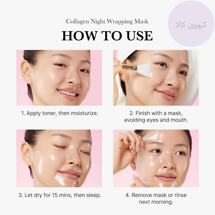 شبها قبل از خواب، بعد از روتین پوستی، مقدار مناسبی از ماسک رو به صورت و گردن بزن و صبح با آب بشور. نیاز به شستشو توی شب نداره.
