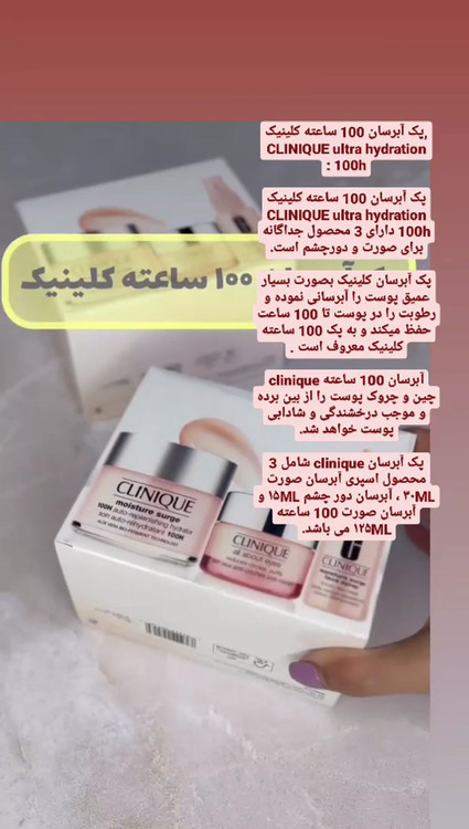 پک آبرسان ۱۰۰ ساعته کلینیک شامل یک کرم و یک اسپری آبرسان صورت و یک آبرسان دور چشم بوده و این محصولات برای انواع پوست مناسب هستند.