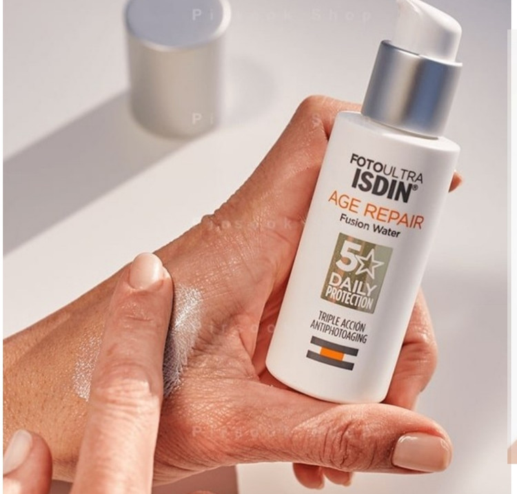 کرم ضد آفتاب جوانساز ایزدین بی رنگ فیوژن واتر age repair یک ضد آفتاب فوق العاده با تاثیر گذاری بی نظیر است. این محصول پس از استفاده به سرعت جذب پوستتان می شود و از پوست شما در برابر آلودگی ها و اشعه های مضر محافظت می کند. یکی از خصوصیات منحصر به فرد ضد آفتاب فیوژن واتر ایزدین عملکرد سه گانه اش روی پوست است. یعنی از پوست مقابل آفتاب عمل محافظت، ترمیم و جلوگیری از آسیب را انجام می دهد.